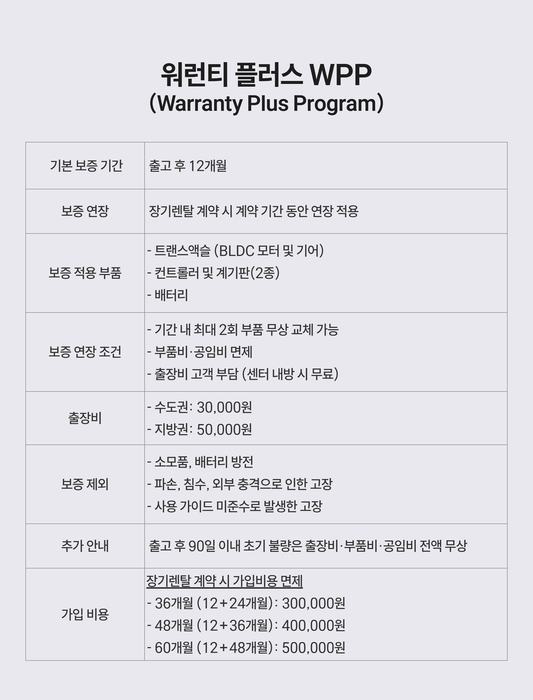 디트로네 장기렌탈은 워런티플러스(워런티 보증 연장, 계약기간 36개월/48개월/60개월) 등 추가 혜택이 포함된 상품으로 디트로네의 다양한 서비스를 경험할 수 있다는 점에서, 일시불 구매와 가격차이가 있습니다.