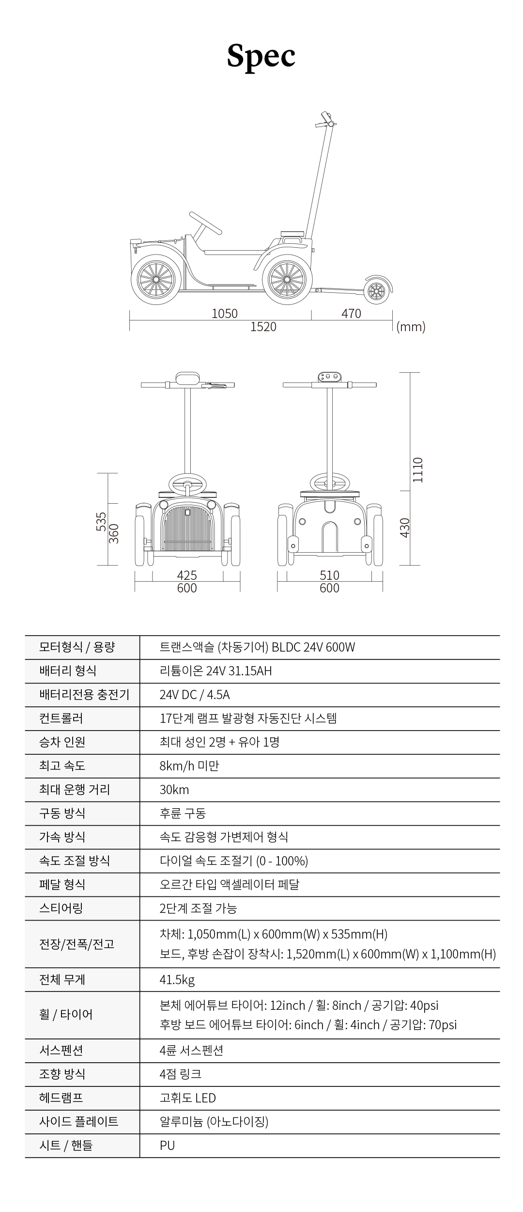 - 색상 : 블랙, 화이트, 매트블랙 (매트블랙 선택 시 무광특수도장 비용 10만원 추가됨)