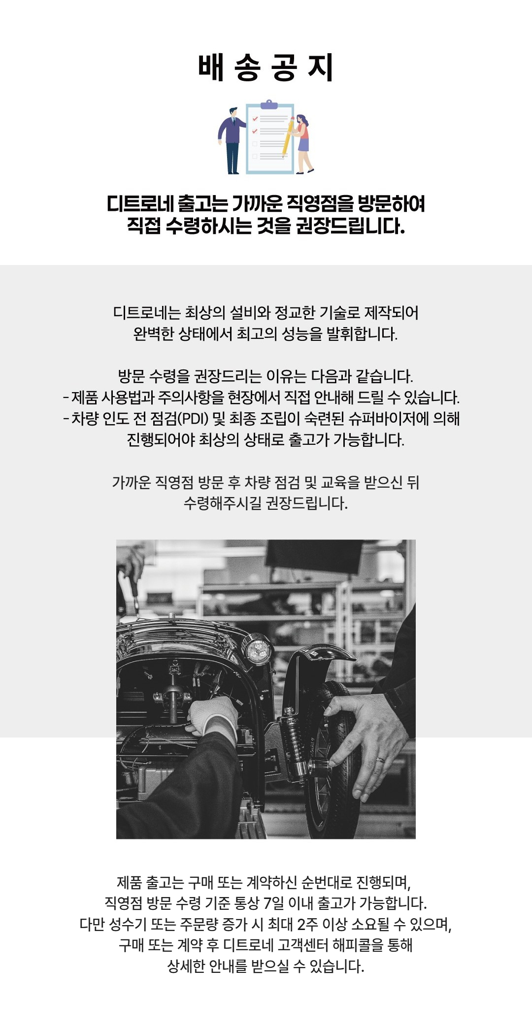 - 방문수령의 경우 선택하신 지점에서 출고일정 해피콜 예정이며, 그때 방문 일정 및 시간 등 조율할 수 있습니다.